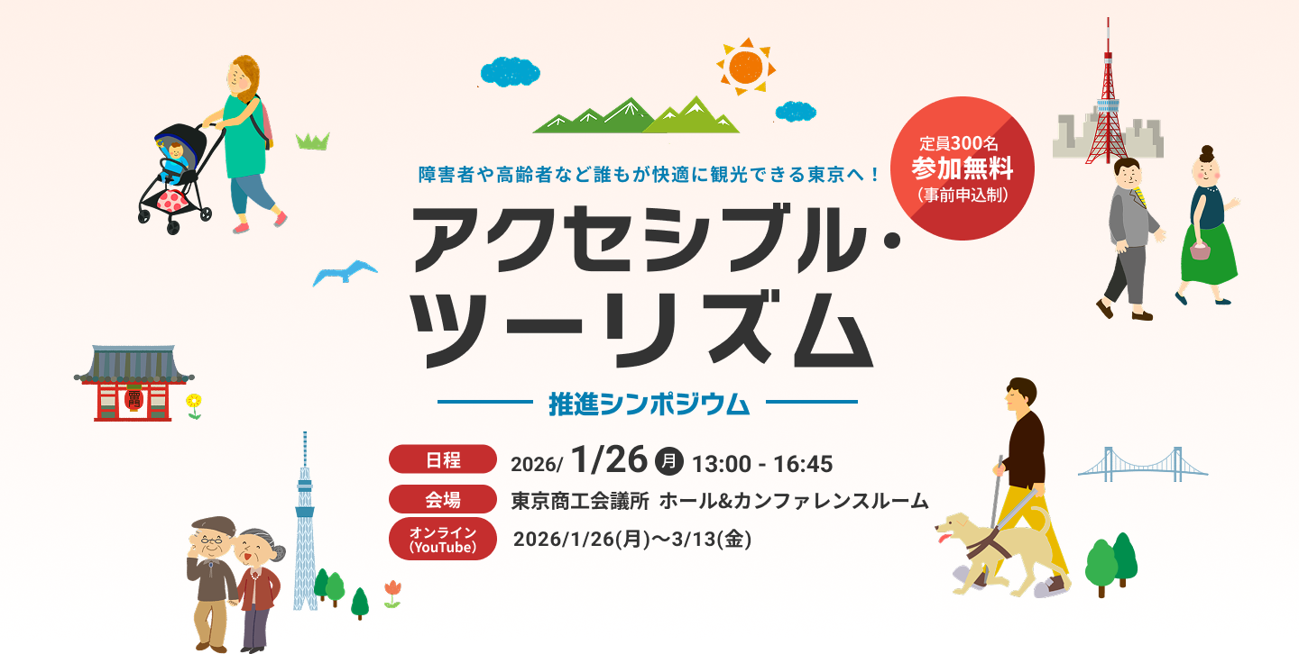 毎年開催している東京都産業労働局主催の『アクセシブルツーリズム推進シンポジウム』が発表されました。こちらのシンポジウムに、HISユニバーサルツーリズムデスクもブース出展いたします。