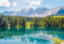 専用車にて、カレッツァ湖へ(28km/約55分) ~世界遺産ドロミテ山塊のドロミテ街道ドライブをお楽しみください~